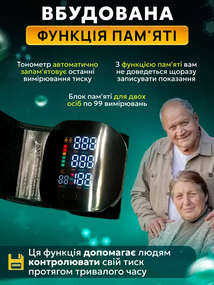 Компактний вимірювальний тонометр з функцією пульсометра підходить для всіх членів сім'ї, включаючи дітей і жінок.
